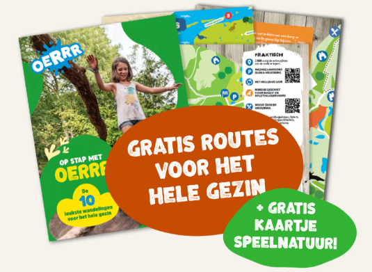 Kom spelen op de leukste plekken in de natuur! Vraag nu je gratis toegangskaartje voor Speelnatuur van OERRR aan. Je ontvangt ook het routeboekje van OERRR met 10 leukste gezinsroutes langs Speelnatuur. HIER
